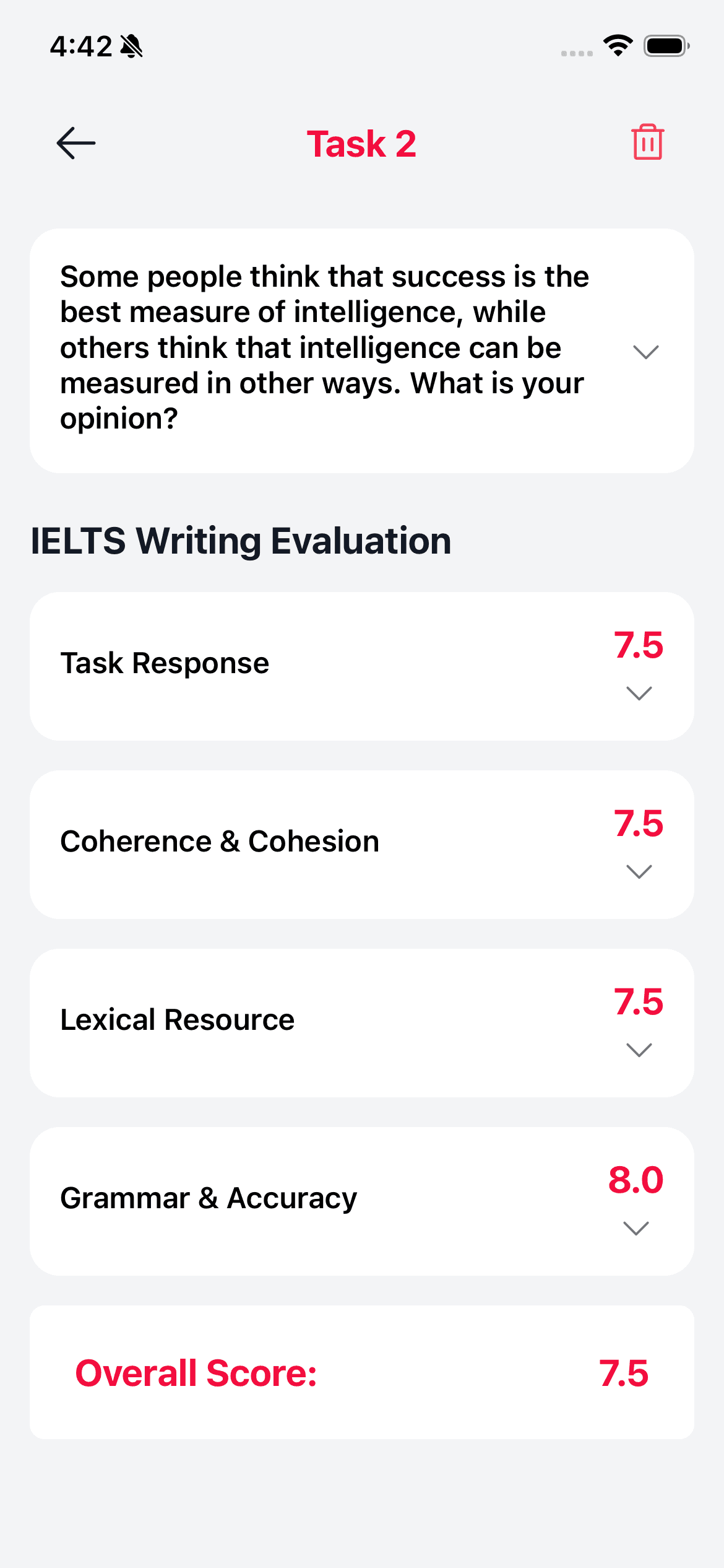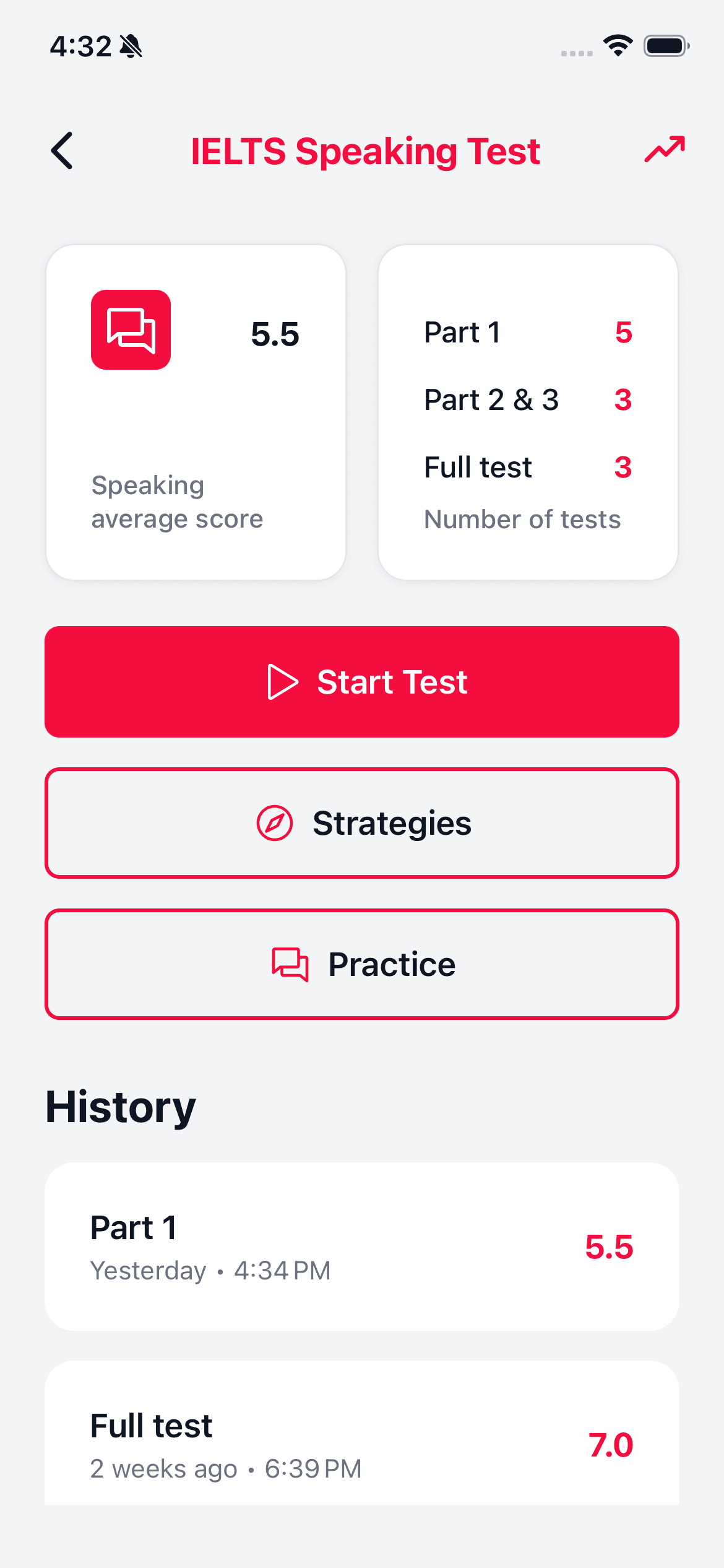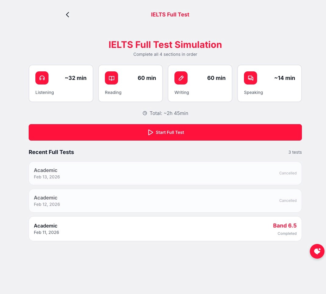 IELTS Mastery helps you practice all four sections with realistic questions and AI feedback for Speaking and Writing, so you can focus on what to improve, not guess.